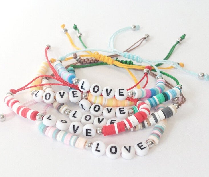 Dit wenszakje van By Romi is gevuld met een lief armbandje met de tekst love. De armbandjes hebben verschillende kleuren en worden willekeurig geleverd. De armbandjes zijn makkelijk te verstellen, dus past bij iedereen.