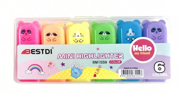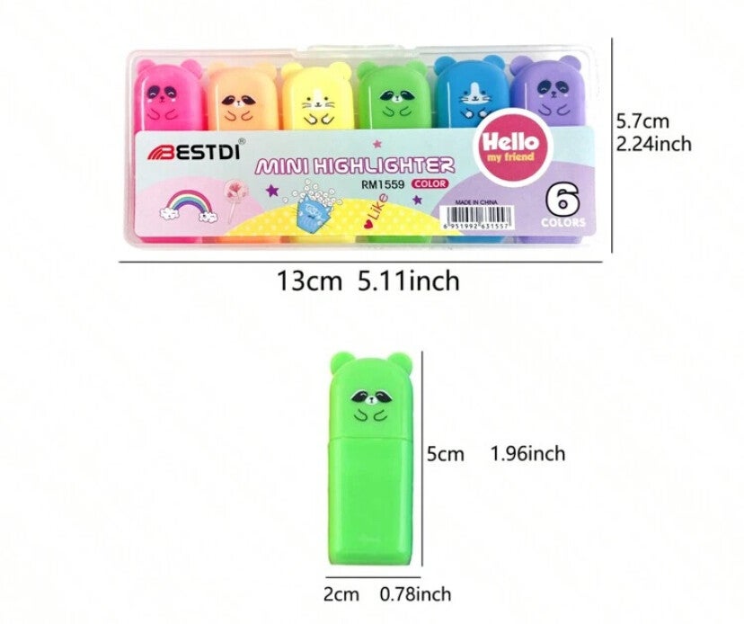 6 stuks kleurrijke schattige panda markeerstiften