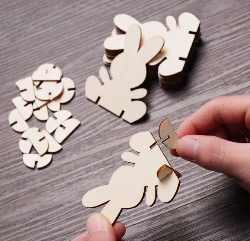 Knutselset 10 Stuks Houten Paashaas DIY – Creatief en Leuke Paasactiviteit!ππ·π°